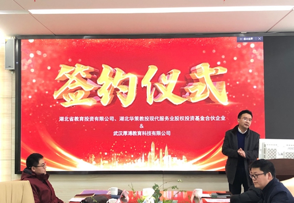 2020年1月1日上午,年之始、月之始、日之始。湖北省教育投資有限公司(以下簡(jiǎn)稱湖北省教投)、湖北華策教投現(xiàn)代服務(wù)業(yè)股權(quán)投資基金合伙企業(yè)(以下簡(jiǎn)稱湖北華策教投)與武漢厚溥教育科技有限公司(以下簡(jiǎn)稱厚溥)合作簽約儀式在武漢花山軟件新城厚溥辦公樓舉行,由湖北省教投、湖北華策教投共同投資厚溥,三方優(yōu)勢(shì)互補(bǔ),積極創(chuàng)新提高IT人才供給側(cè)效能,助力IT產(chǎn)業(yè)發(fā)展及區(qū)域經(jīng)濟(jì)轉(zhuǎn)型升級(jí)。